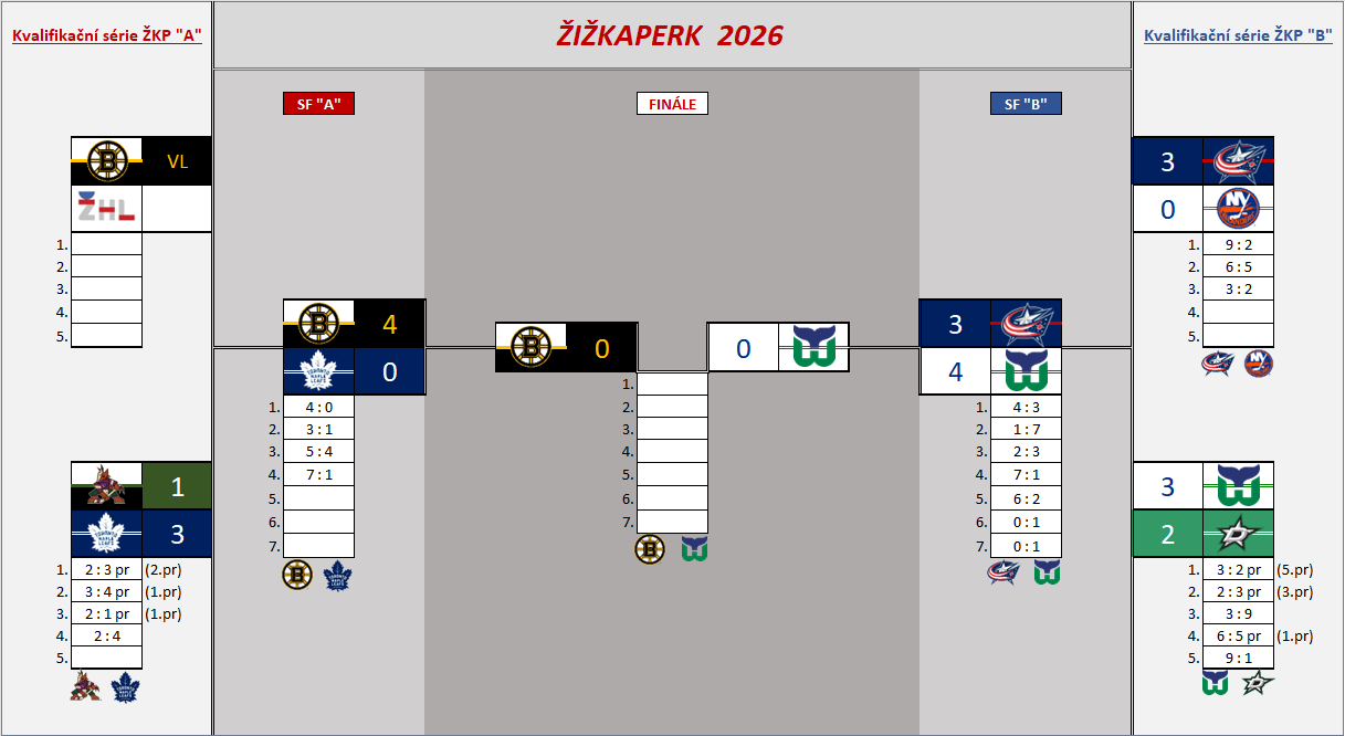 Toronto po první třetině těsně vedlo, ale ve druhé přišel totální obrat Briuins. Na druhý gól Bruins z hole Bourquea už Maple Leafs nenašli odpověď a vítěz loňské ŽHL je tak ve finále Žižkaperku 2026.