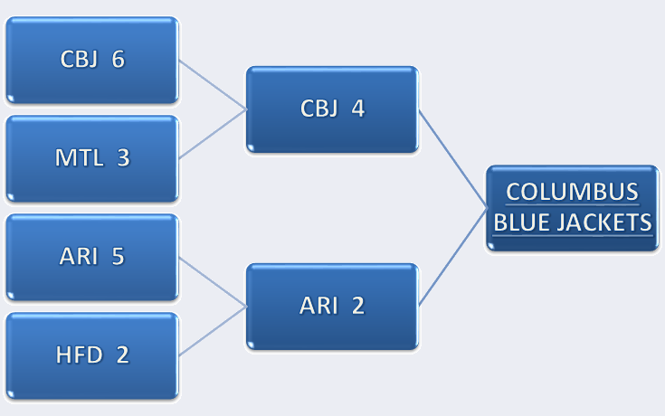 Postupující týmy , které hrály o medailové pozice, byly tyto: CBJ, HFD, ARI a MTL.